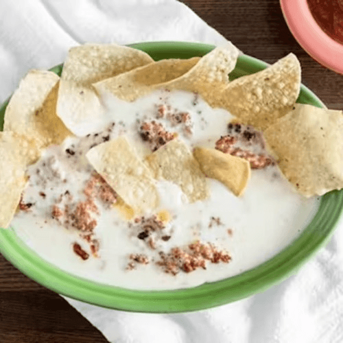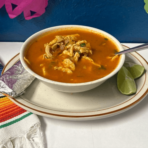 Mexican chicken soup made from scratch with rice, pico de gallo, enchilada and ranchera salsa. Served with tortillas
