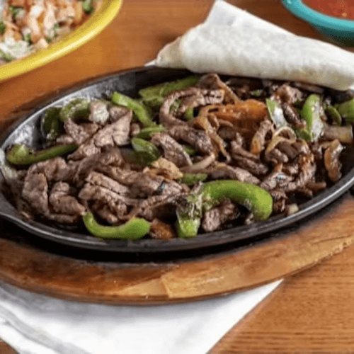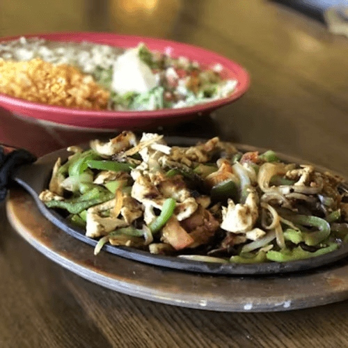 Grilled chicken or steak grilled with bell peppers, tomatoes, & onions. Served with rice, beans, pico de gallo, guacamole salad, sour cream, & your choice of tortillas. (Lunch size)