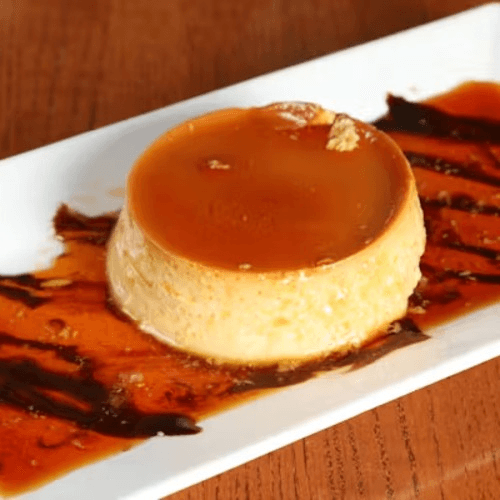 Made from scratch custard where sugar is cooked to caramel stage then added to a mixture of eggs, condensed milk, evaporated milk, and vanilla, then baked to perfection