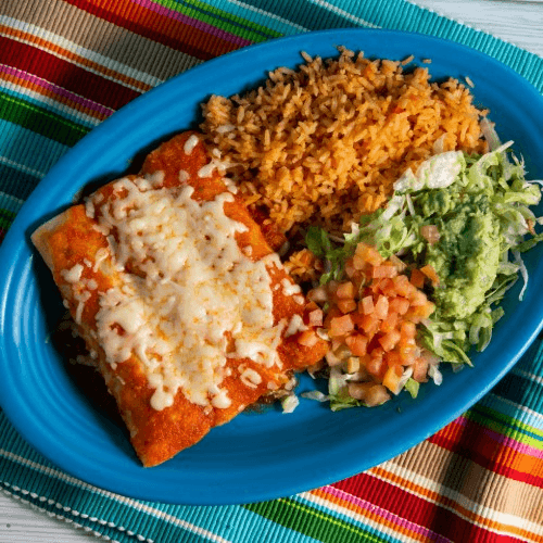 (3) grilled shrimp and cheese corn tortilla enchiladas, topped with enchilada sauce and shredded white cheese. Served with guacamole salad and rice